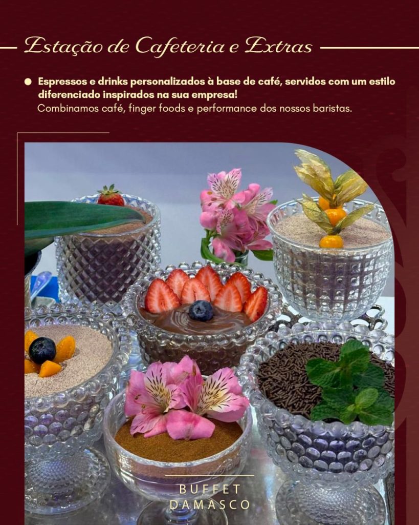 Espressos e drinks personalizados à base de café, servidos com um estilo todo diferenciado inspirados na sua empresa!